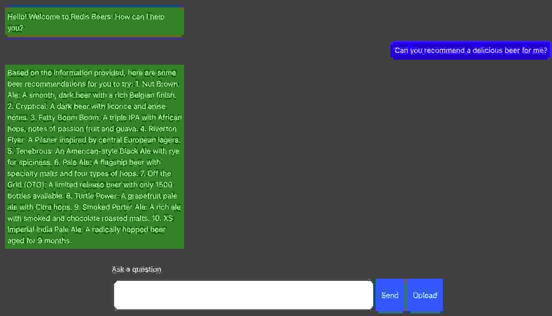 要访问前端,请导航到 https://:3000. 从那里,你可以向机器人询问推荐