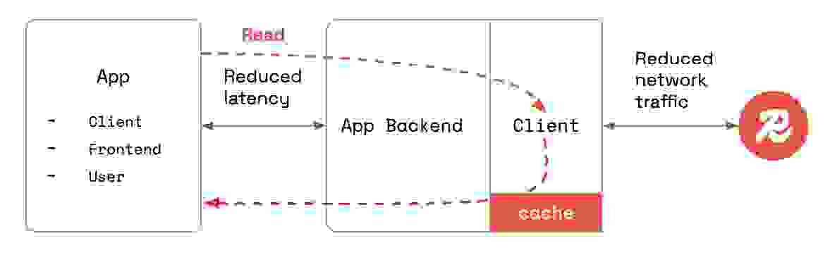 减少网络开销并提升应用程序性能的一种有效方法是使用客户端缓存,也称为近端缓存。这种技术允许频繁的读操作直接从客户端运行的同一应用服务器上的缓存中提供。启用客户端缓存后,客户端应用程序将使用后端应用程序缓存的数据,从而减少网络流量和延迟。