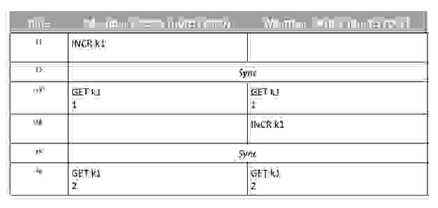 这里有一个简单的测试。让我们看看在 cluster1 和 cluster2 上的两个 CRDB 实例中对 k1 执行 INCR 操作如何同步以确保最终值的准确性。t1 到 t5 表示事件顺序。在 cluster1.local 下的操作在 rp1 容器上执行,在 cluster2.local 下的操作在 rp2 容器上执行。