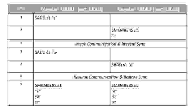 这里还有一个可以尝试的例子。这次我们将在操作之间模拟网络故障以观察问题。在这种情况下,我们将看到 Redis SET 如何与 CRDT 配合工作。我们将创建一个集合并让它在集群之间同步。然后,我们将中断网络,并在每个集群中私下向 SET 添加一个新成员。一旦通信恢复,您将看到 CRDT 如何解决冲突写入并合并这两个集合。