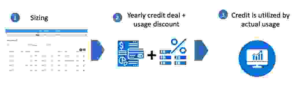 步骤 1:我们的销售代表将引导您完成一个大小调整练习,以估算您的使用量和年度支出。