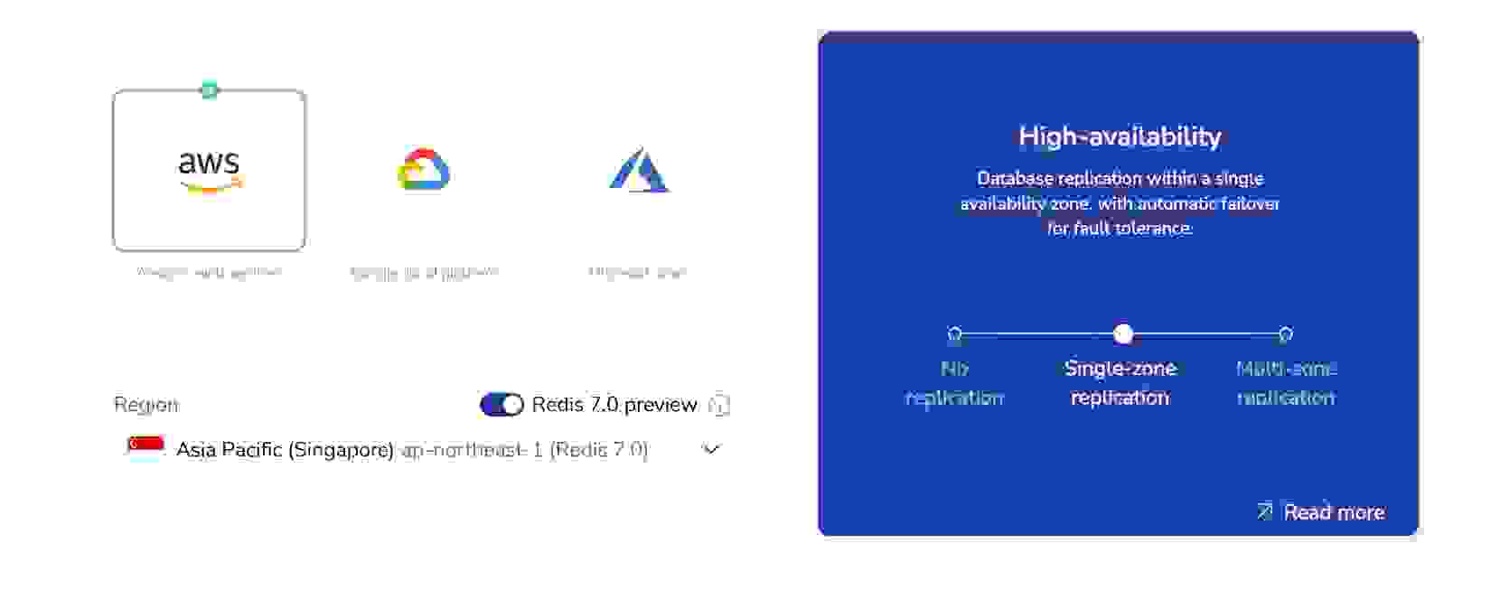 当您进入供应商/区域选择部分时,您会注意到一个新的Redis 7.0 预览切换。 选择它会将区域列表缩小到支持 Redis 7.0 的区域。(我们将逐步向列表中添加更多区域。)