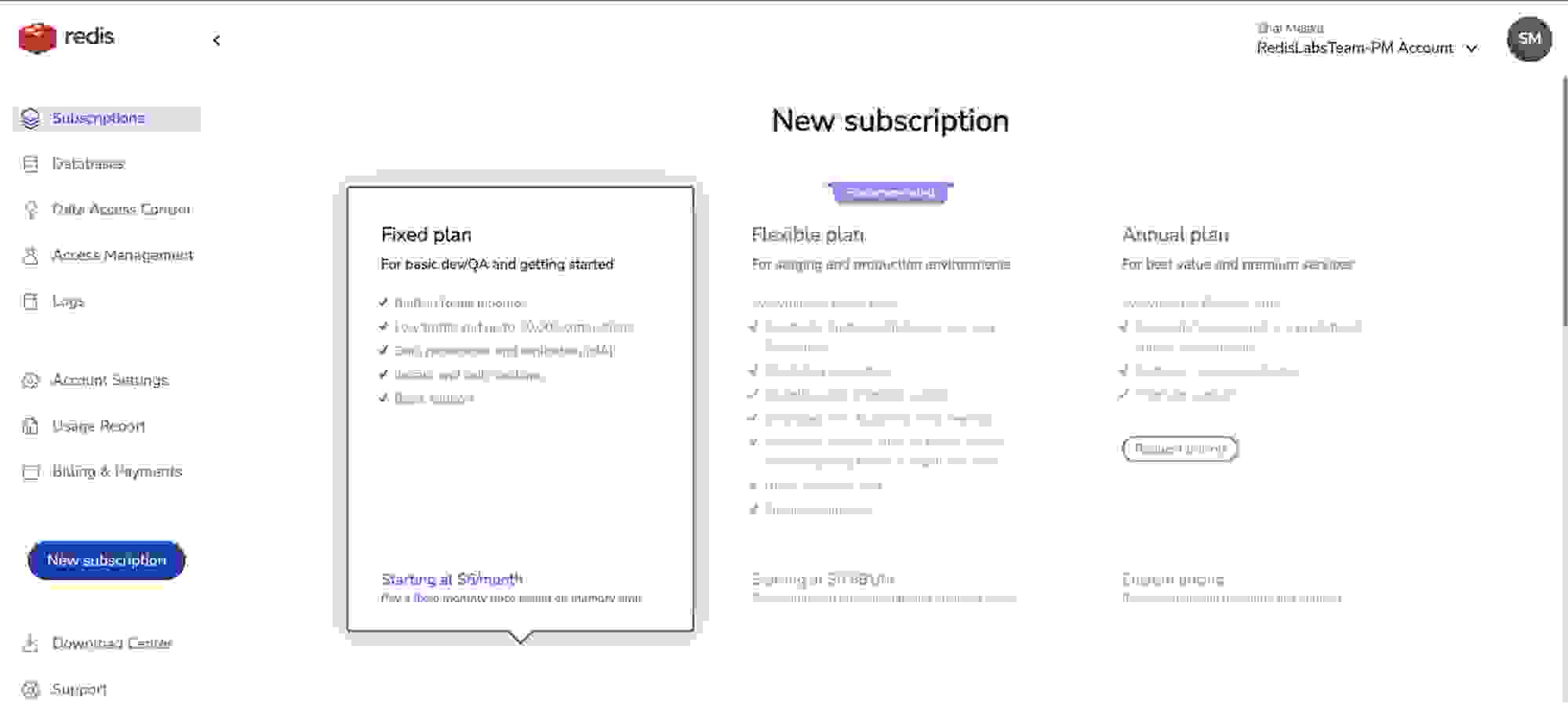 如果您已经拥有 Redis Cloud 帐户,请创建一个新的固定订阅。