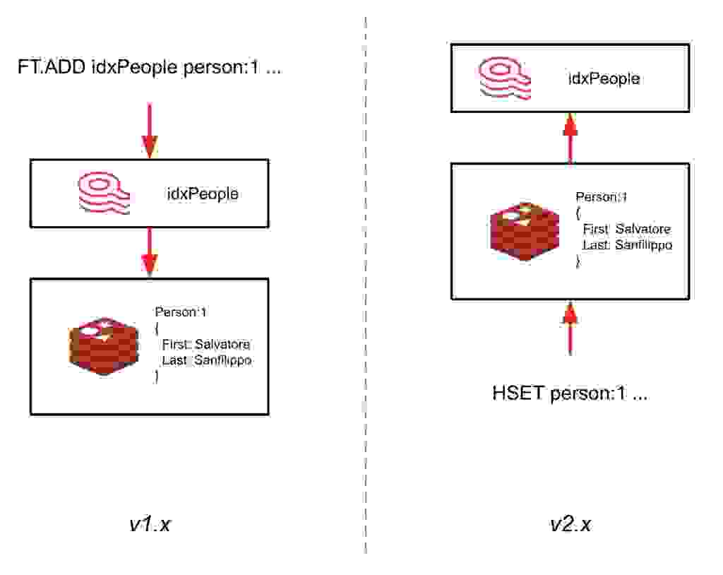 这个里程碑版本,被称为 2.0-M01,标志着索引与数据保持同步方式的重新架构。现在,RediSearch 将不再需要通过索引写入数据(使用 FT.ADD 命令),而是跟随写入 hashes 的数据并自动对其进行索引。