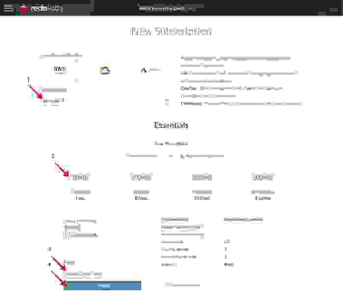 要创建新的 Redis Enterprise Cloud Essentials 订阅