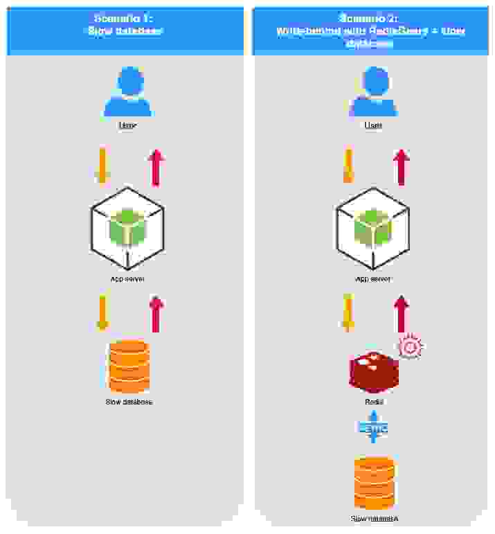 为了展示 write-behind 的优势,我们开发了一个 演示应用程序,其中我们添加了端点以支持两种场景: