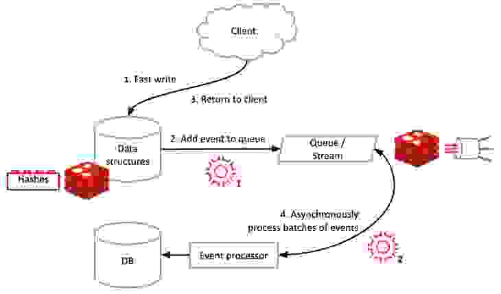 传统的基于关系/磁盘的数据库通常无法应对负载的显著增加。这就是 RedisGears 发挥作用的地方。RedisGears 的 write-behind 功能依赖于 Redis 来完成繁重的工作,异步管理更新,减轻后端数据库的负载和减少峰值。RedisGears 还保证所有更改都被写入您现有的数据库或数据仓库系统,保护您的应用程序免受数据库故障的影响,并将应用程序的性能提升到 Redis 的速度。这极大地简化了您的应用程序逻辑,因为它现在只需要与单个前端数据库 Redis 通信。write-behind 功能最初支持 Oracle、MySQL、SQL、SQLite、Snowflake 和 Cassandra。