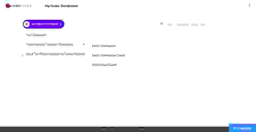 最新版本的 RedisInsight 使您可以通过单击来配置 Redis Enterprise Software 或 Redis Enterprise Cloud 数据库的连接详细信息。 单击“添加 REDIS 数据库”按钮以从不同的位置搜索数据库,如下所示