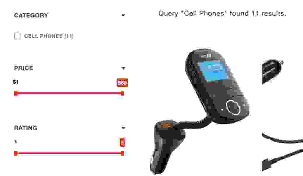 此项目的一个要求是能够使用不同的属性查询产品目录。按产品名称查询是显而易见的选择,但我们也实现了按价格、评分和类别进行筛选。在分面导航菜单中,您可以使用它来快速找到您正在寻找的内容。
